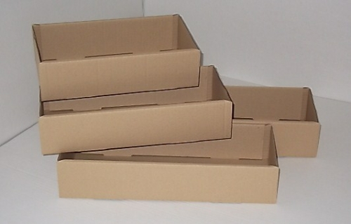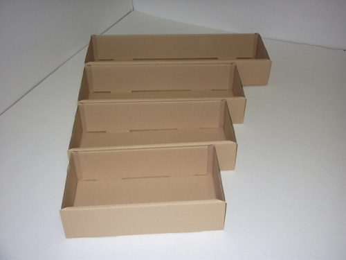 Barquette haute ou bac de rangement droit. pour rangement, répartition de pièces diverses, aménagement de placard, étagères. Réalisée en petite cannelure de couleur havane, livré à plat, en colis de 100.